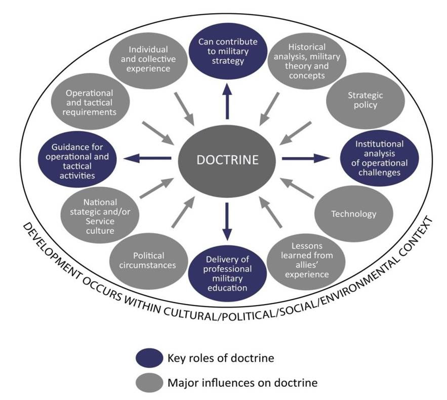 If I were compelled to define doctrine in a single sentence, that sentence would be: “Doctrine is a tangible representation of a military’s institutional belief system regarding how that military understands, prepares for and (in theory at least) conducts military activities.” To this general definition, which is derived from that contained in an earlier and more comprehensive study, some caveats must be added.