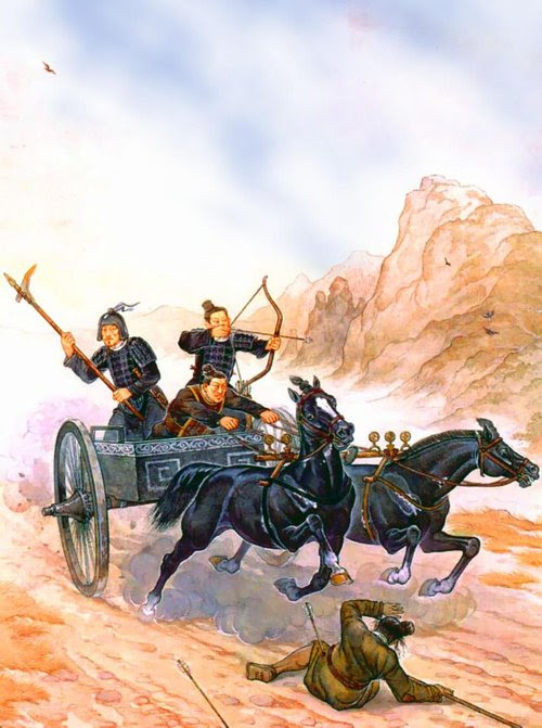 Qin Dynasty war chariot in battle during the Warring States, Ancient China (Pinterest)