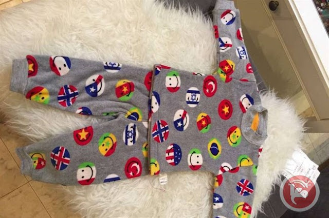Apparently, the sweep of clothing stores also resulted in finding these offensive pajamas that included an Israeli flag among many others: